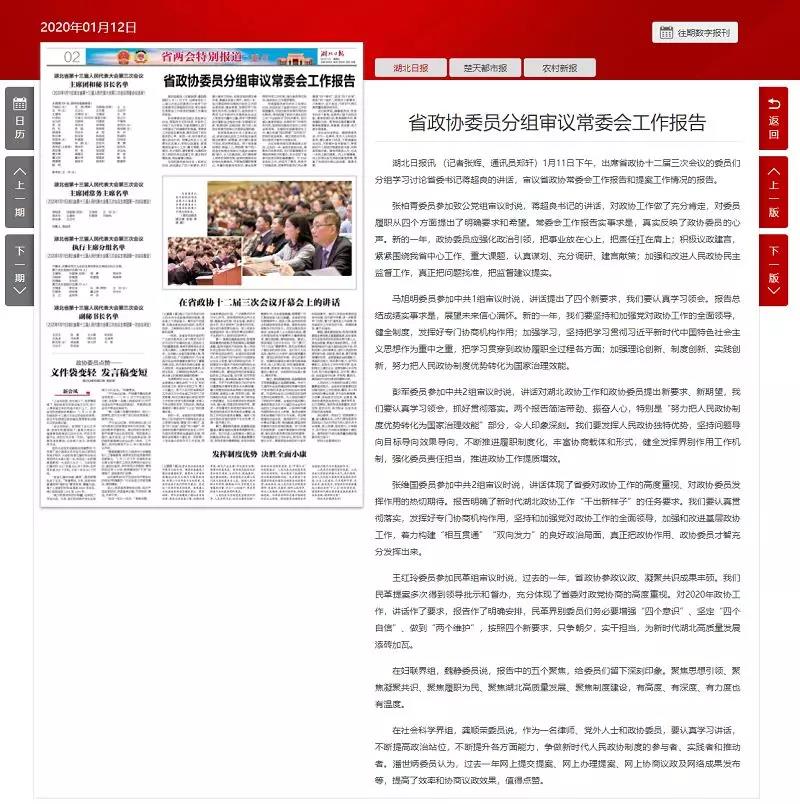 2020年1月11日《湖北日?qǐng)?bào)》:
