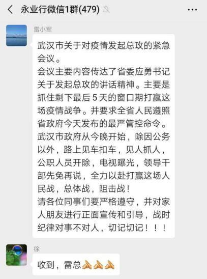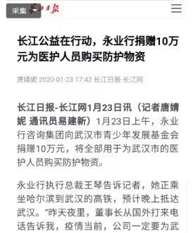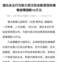 1月23日,臘月二十九日。凌晨?jī)牲c(diǎn),一條前所未有的通告,讓潘世炳一夜未眠?!皬?3日10時(shí)起,暫時(shí)關(guān)閉室內(nèi)公共交通以及航空和鐵路的離漢通道?!边@條信息讓潘世炳意識(shí)到,這場(chǎng)沒有硝煙的“戰(zhàn)爭(zhēng)”正在全面升級(jí)。天一亮,他便召集永業(yè)行高管召開視頻會(huì)議,親自擔(dān)任疫情防控工作領(lǐng)導(dǎo)小組組長,圍繞抗疫捐助、疫情防控、員工健康監(jiān)測(cè)、信息排摸、工資發(fā)放及困難員工救助等進(jìn)行專題研究。23日下午4時(shí),永業(yè)行捐贈(zèng)的10萬元新冠肺炎疫情防控??钷D(zhuǎn)入武漢市青少年發(fā)展基金會(huì)賬戶,成為疫情發(fā)生后國內(nèi)首家捐贈(zèng)的專業(yè)服務(wù)機(jī)構(gòu),多家媒體宣傳報(bào)道。