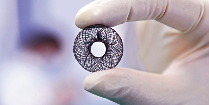 在武漢唯柯醫(yī)療科技有限公司,一個熟練工制作一枚直徑約24mm的心房分流器要用近三個小時,再經(jīng)過高溫定型等多道工序完成。心房分流器用于心力衰竭的治療上,是國內(nèi)首創(chuàng)、國際領(lǐng)先的心衰介入治療前沿器械。 長江日報記者高勇 攝